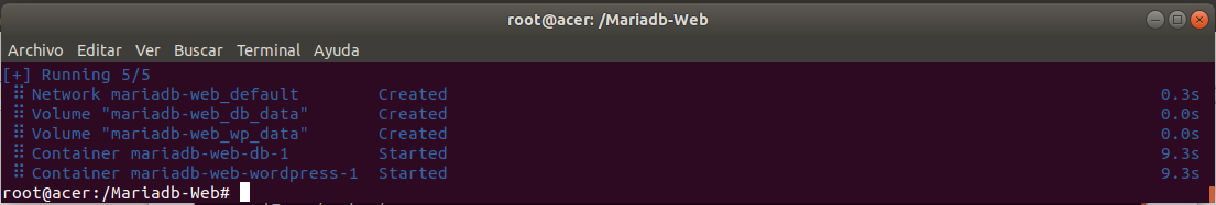 - In: root@acer:/Mariadb-Web# docker-compose up -d