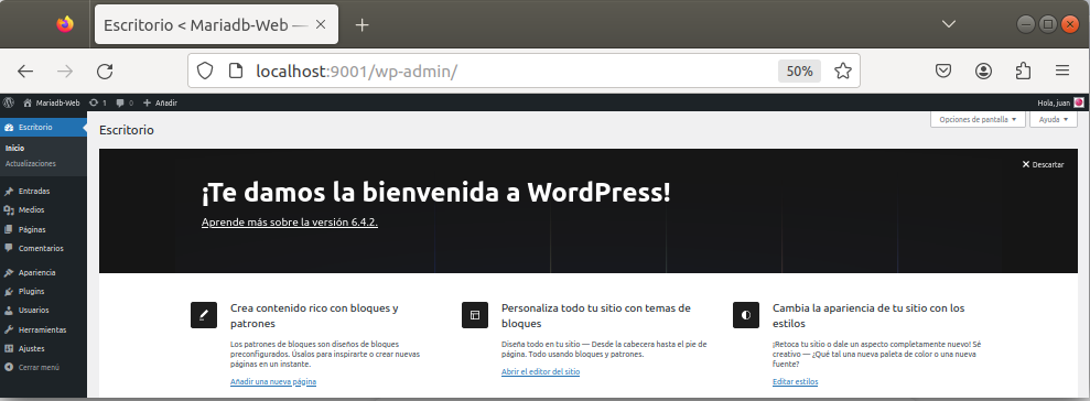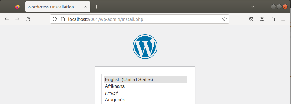 -. Procesamos la configuración típica de WordPress y iniciamos sesión con http://localhost:9001/wp-login.php