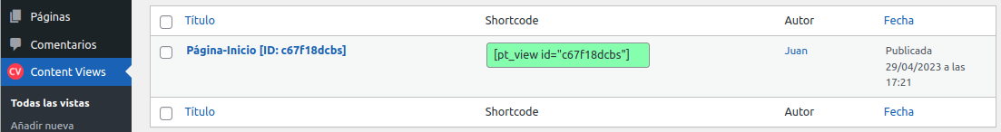 -. Tenemos que copiar el Shortcode de color verde y pegarlo en la pagina de inicio.