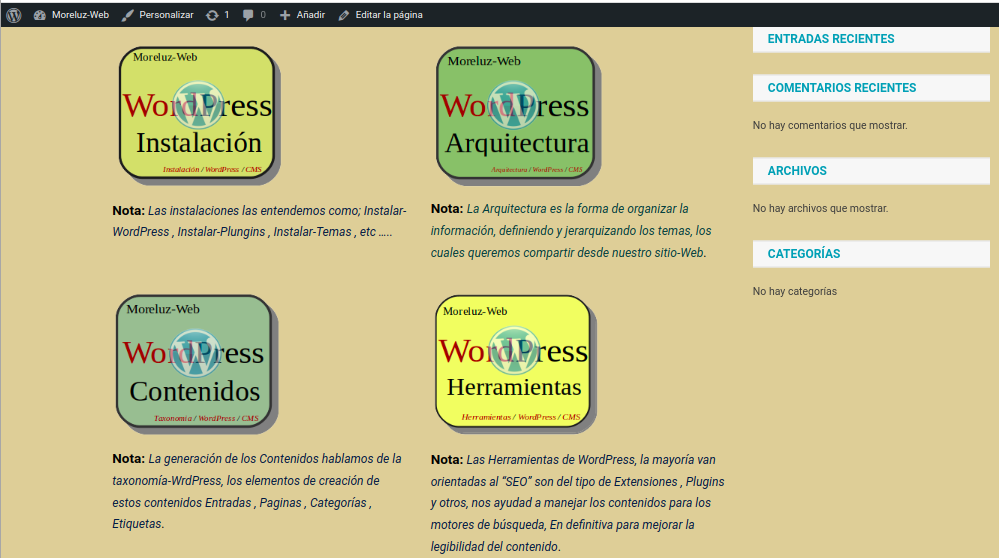 -. Para mejorar la experiencia de usuario usare el Plugins que instalamos al inicio de la creación de este sitio-Web concretamente “Content-Views” crea una cuadrícula y una lista de las entradas y páginas de WordPress. Podemos usar una imagen creada por nosotros o una fotografiá, por supuesto del tema que tratemos. En el caso que nos ocupa ¡este sitio-Web! Las imágenes la he generado usando LibreOffice-Draw.
