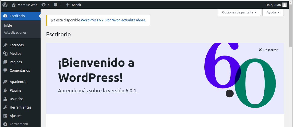 -. Por fin tenemos nuestro flamante ¡Bienvenido a WordPress!
